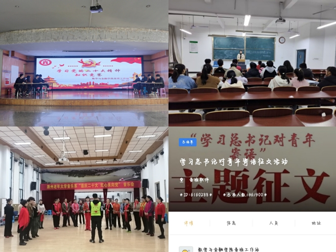 “赛”以赛促学,书写青春答卷。开展以“党的二十大和我的人生路”为主题的征文大赛、“学党史,知党情,跟党走”党的二十大精神知识竞赛、“纸短情长,共赋三行情诗”大赛,以“三行情诗”的形式寄语党的二十大;举办学习心得笔记大赛,数学建模、爱心社等社团举办“传承红色经典,学习党的二十大”等特色活动。通过以赛促学,以学促践,学用结合的形式,引领学生厚植家国情怀,涵养进取品格,以奋斗姿态激扬青春,不负时代,不负韶华。(通讯员:吴梦君)