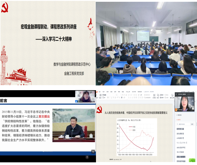 为深入学习贯彻党的二十大精神,推进课程思政建设,金沙威尼斯官网课程思政示范中心联合金融工程系党支部,在2021级金融工程专业开展了“党的二十大精神进课堂”课程思政系列讲座,推动党的最新理论创新成果“带着热气”进课堂、进头脑。