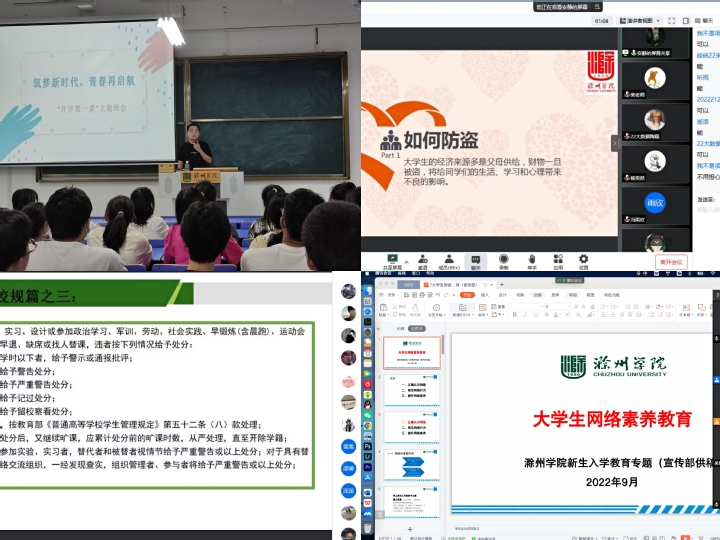 强化归属感,让入学教育更有温度。学院创新形式开展迎新接待,新生与辅导员合影打卡;举办开学典礼,以终身难忘难的仪式调动新生融入学校的内在积极性,增强对学校学院的归属感;建立新生家长微信群,为家校协同育人搭建平台,院领导以及辅导员深入走访新生宿舍,把爱和关怀传递给每一位新生;实施“学长学姐引路”,开展典型榜样汇报会,来自学姐学长的一封信等,发挥朋辈互助作用;通过心理晚会、军训风采视频展等方式让新生感受到新集体的温暖,帮助其更快适应大学生活。