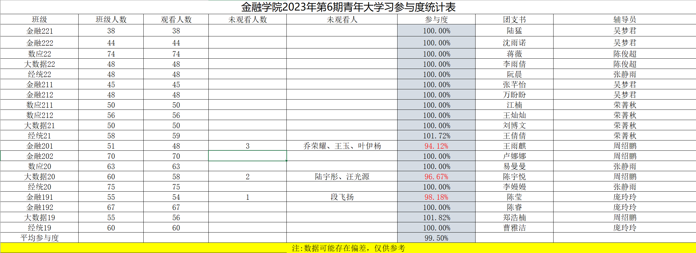金沙威尼斯欢乐人城2023年第六期青年大学习参与度统计表.xlsx