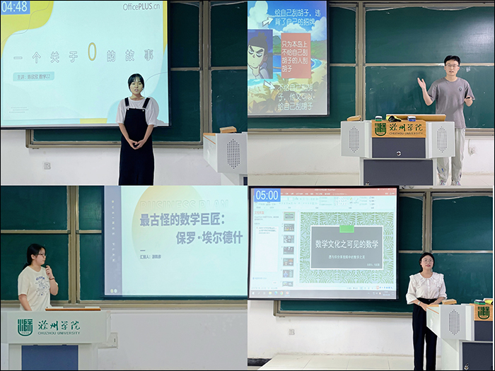 师范生课程思政教学技能比赛分初赛和决赛两个环节,初赛环节即“数学文化故事”演讲比赛,参赛学生需精选数学文化主题故事、制作演讲PPT进行五分钟演讲。决赛环节为模拟上课,包括15分钟现场教学展示,5分钟专家提问。