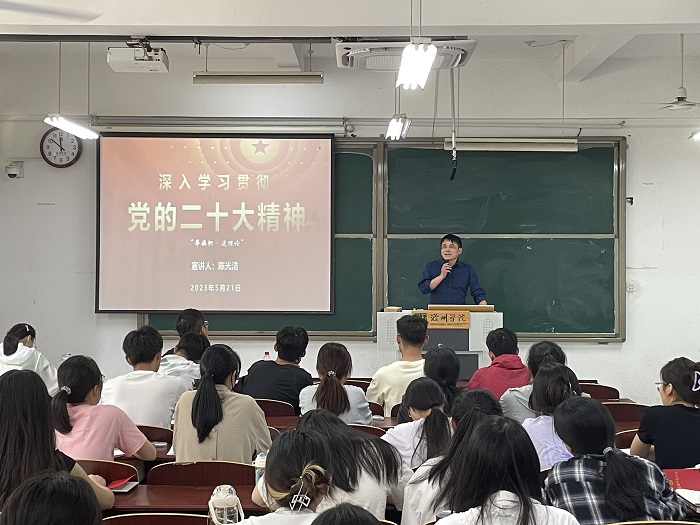 5月21日,马克思主义学院博士陈光洁老师以“深入学习党的二十大精神”为题为金沙威尼斯官网入党积极分子授课。