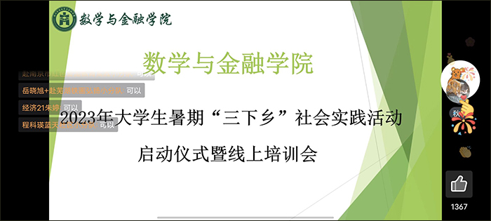 6月18日晚,金沙威尼斯官网正式启动2023年大学生暑期“三下乡”社会实践活动启动仪式暨线上培训,会议在腾讯会议线上举行。院党委副书记、纪委书记汪志圣,指导老师余晓美、陈沭文,团委融媒体、实践部代表以及院立项团队成员代表参与会议,会议由院团委负责人荣菁秋主持。