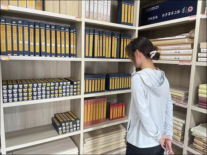 6月28日,实践小分队去往安徽省合肥市巢湖市黄麓镇,访问国家非物质文化遗产纸笺加工技艺的保护基地-“掇英轩”,了解纸笺文化的发展历史、传承之路和制作流程。“掇英轩”以研究中国优秀的传统纸笺加工技艺,恢复与发展中国古代名纸名笺,服务现代书画艺术为使命。“掇英轩”的工作人员向我们介绍了一些精美的纸笺产品,例如粉蜡、羊脑笺、流沙笺等。“掇英轩”负责人说,通过染色、施胶、填粉、施蜡、托裱、洒金、挣平、水印、描绘等多道工艺将原手抄原纸做成加工纸。