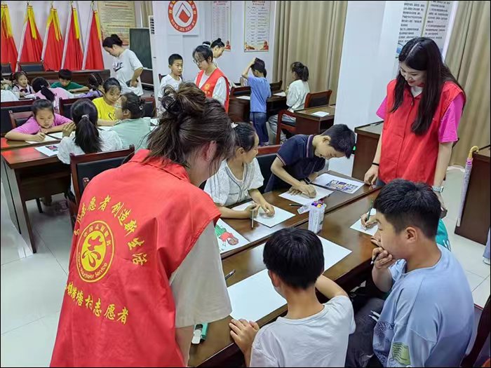 正值父亲节,实践小分队和乡村农家书屋开展了“感恩父亲,用画表达”活动,随后在村里开展了“珍爱生命防溺水,茁壮成长人人羡”活动,成员余子宁通过展示相关案例故事向孩子们普及溺水急救知识。同时实践小分队也用自己的专业知识为孩子们辅导功课,为乡村教育贡献自己的青春力量。在端午节这天,实践小分队亲手包粽子发放给孩子,给孩子们带来温情与呵护。此后,实践小分队前往淮南市三和镇东方之星幼儿园。团队成员亲切地与儿童交流,与幼儿园教师沟通,并且实时了解和观察儿童的行为习惯,以身示范,为小树苗们纠偏扶正,希望他们都能茁壮成长。