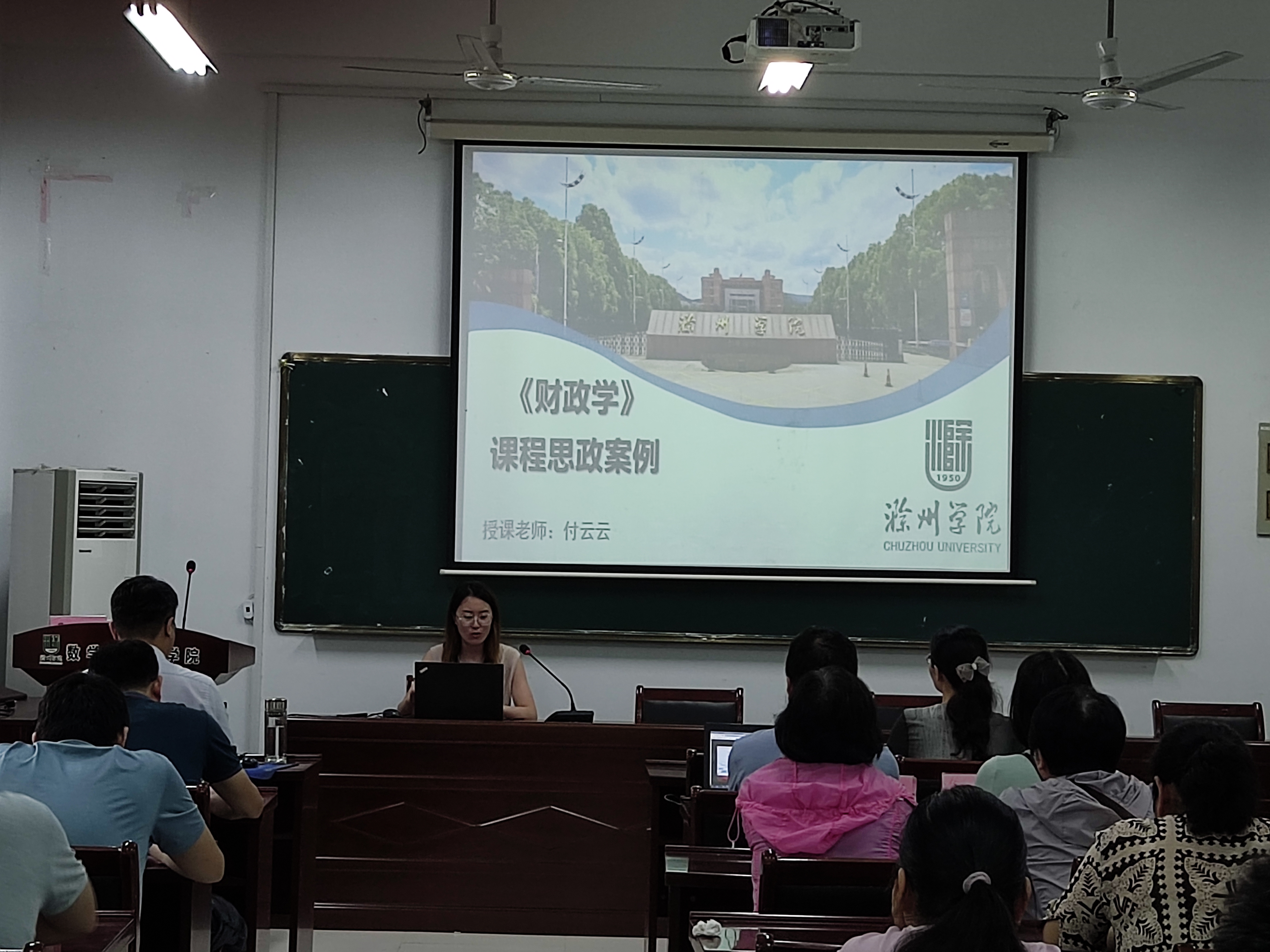 奚昕解读了课程思政的内涵以及推进课程思政的重要意义,汇报了《人力资源管理》课程思政示范课建设情况,展示了课程教学大纲中思政设计点,通过中国经济发展的巨大成就与人力资源的贡献等案例讲述思政体会。