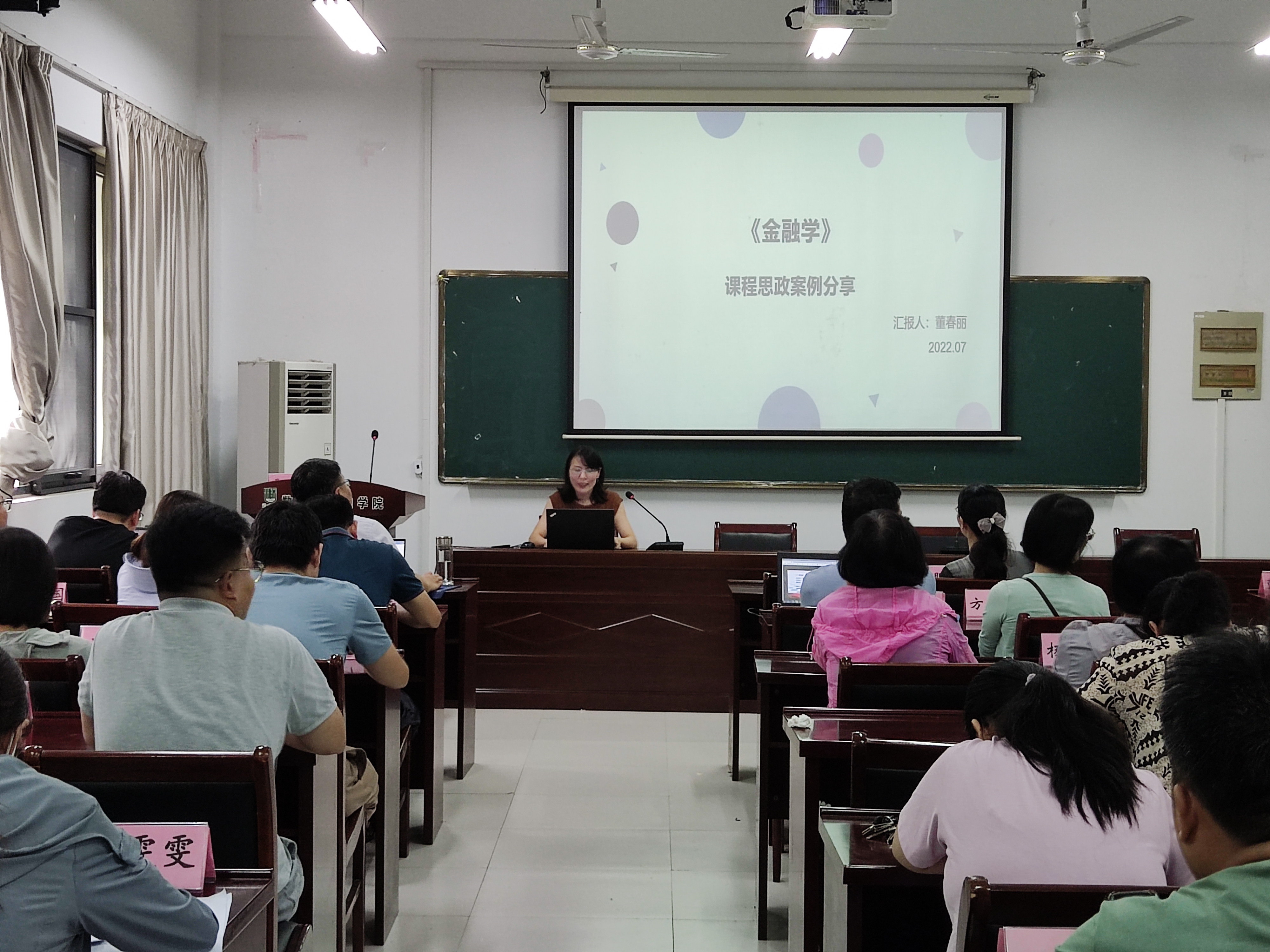 董春丽讲述了《金融学》课程的思政设计,通过历史中的金融活动感受中华文明,开展金融思政微视频比赛和金融思政讲座,列举中美贸易战、欧债危机等事件提升内容趣味性。