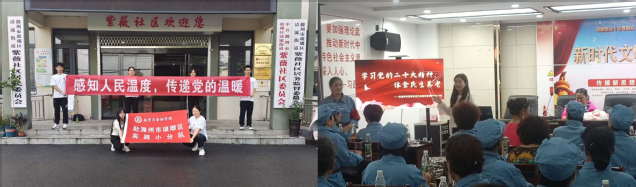 进社区,“滴灌式宣讲”有声有色,让党的思想化作“堂前燕”飞入寻常百姓家。在滁州市紫薇社区,金沙威尼斯欢乐人城大学生红色理论宣讲实践小分队一行7人,以“学习党的二十大精神,体会民生养老问题”为主题开展理论宣讲与志愿服务活动。队员们在实地走访社区、线上线下问卷调查的基础上,明确理论宣讲与实践服务的工作重点,广泛收集资料并精心制作宣进PPT,最后,通过社区集中宣讲、上门志愿服务等形式圆满完成了本次实践活动。实践小分队成员在社区工作人员的陪同下,入户慰问了一些独居老人及特殊家庭,声情并茂为老人们讲解党的好政策、传播党的新思想、讲述时代故事,与老人们谈心交流,并以大学生的实际行动为老人们送去了温馨。