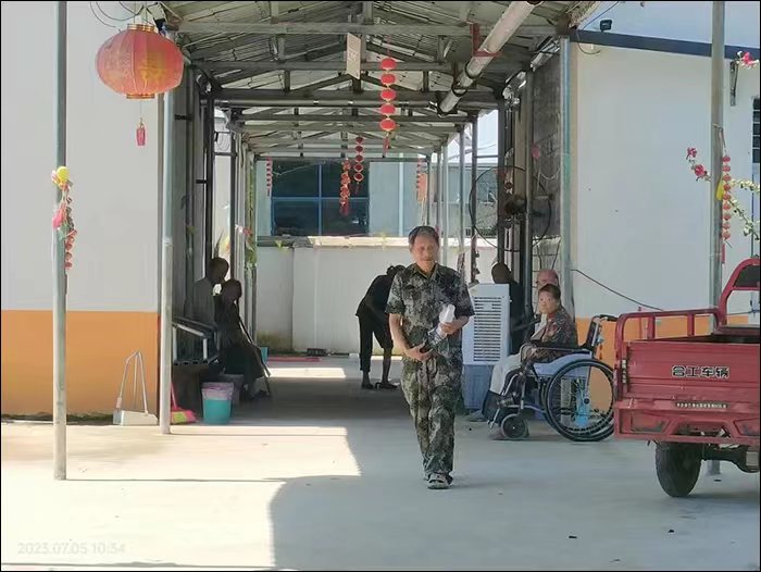 在与养老院负责人简单交谈过后,我们参观了养老院内部的环境。有的老人坐在走廊的椅子上安静交谈;有的老人坐在电视前,认真观看新闻联播;有的老人在房间休息。一切看起来都很美好。院子里有个花园,种着各种各样的花和绿植。还有个小小的广场供老人日常休闲娱乐。关于老人的日常活动,养老院负责人介绍说,他们会经常一起包饺子,粽子,摘菜,一起看看电影,跳跳广场舞。在参观环境的同时我们与老人交谈,老人都表示很喜欢这里,有人一起作伴,一起谈心,很快乐。看到他们脸上的笑容,真心觉得农村养老院是一个值得托付老人的地方。
