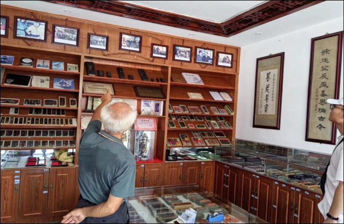 三十多年前,制墨厂的数量不在少数,但随着各种新型书写工具出现和机器制作的挤压,手工制墨行业危机四伏。“物竞天择,适者生存”,为保全制墨厂,两位墨场老板选择了不尽相同的生存手段。承文堂的刘老板说:“我们承文堂的徽墨主要用于线下出口,销往新加坡等地,这是我们最主要的销售渠道。”相较于新加坡等国的市场行情,墨条在国内市场的销售情况却是另一番景象,刘老板感叹道:“国内市场不行。现在喜欢书法这些传统艺术的青年人越来越少了,大家大多是用钢笔,或是电脑打字,用墨条的人少之又少,因此国内市场徽墨的购买力很弱。”而胡开文墨厂则紧跟了时代发展的潮流,主打线上销售模式,利用网络平台拓宽自己的销售渠道,也取得了不错的销售成果。胡老板也毫不吝啬地分享他学制墨的心得,说着当年三五年才能出师的苦学“学制墨就好像做人,贪快是不能学好的,只能踏实下来耐住性子,才能学成出师。”