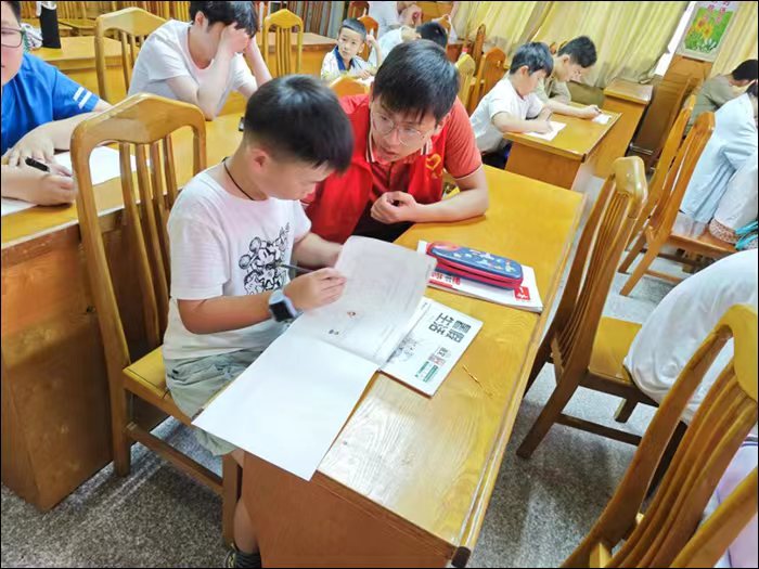 在这几天的时间里上午都是孩子们用来写暑假作业,为了丰富孩子们一天的生活,我们也带孩子们游戏。我们不仅仅会给孩子们看一些有意义的儿童动画片和电视剧,潜移默化地培养孩子们的为人处事;团队还自费给孩子们购买了象棋、军旗等各式各样的益智类游戏。一方面可以放松心情,另一方面能够锻炼孩子们的思维能力、反应能力和协调能力。