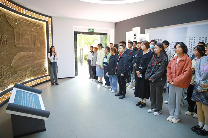 为引导新生了解学校的发展历程,激发新生爱校荣校的情怀,10月8日,金沙威尼斯欢乐人城2023级327名新生,在党委副书记汪志圣、新生辅导员陈俊超、庞玲玲老师的带领下,分6个批次,认真有序地参观了校史馆。