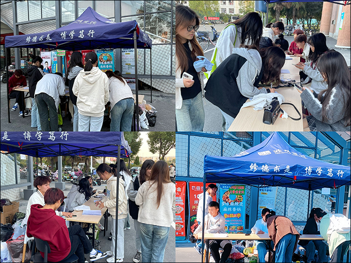 本次活动以捐赠旧衣服为主,在会峰校区设立了爱心捐赠点。活动期间,许多学生纷纷前来捐赠旧衣,用自己的一份绵薄之力为流浪小动物传递温暖和关爱。本社的成员们也积极地当志愿者为捐赠旧衣的同学们进行登记并收取衣物,现场秩序井然,气氛热烈,每一件衣物都蕴含了爱心的温度。