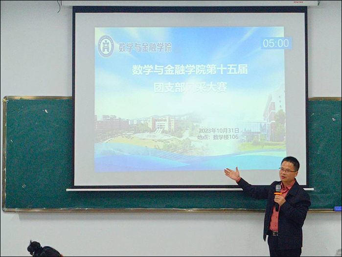 10月31日晚,金沙威尼斯官网团委在数学楼106开展团支部风采大赛。院党委副书记汪志圣、院团委负责人荣菁秋、辅导员陈俊超、周绍鹏、吴梦君以及2021、2022、2023级学生骨干参加此次比赛,比赛由组织部部长查泉音主持。