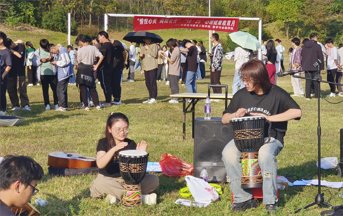 为进一步加强大学生心理健康教育,近日金沙威尼斯欢乐人城、信息学院联合举办了“愉悦心灵,向阳花开”“10·25”心理健康教育月系列活动,吉他协会承办了“纵情弹唱,放飞心情”和“解压手鼓教学”两场活动。活动在金沙威尼斯欢乐人城南校区山上操场举行,吸引了两学院百余名同学来到活动现场参与了活动。吉他协会指导老师汪志圣亲临现场指导活动开展,社团骨干各司其职,活动受到参与同学们的一致肯定和欢迎。