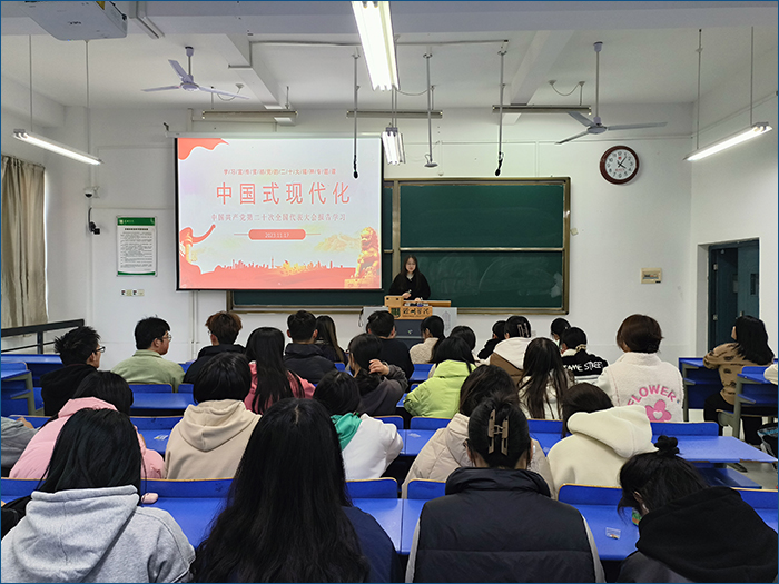 活动上,朱梦迪老师以四个部分来讲述中国式现代化具体内涵:一是中国式现代化的含义;二是中国式现代化的“中国式”的体现;三是中国式现代化“新”在何处;四是走中国式现代化道路的实践要求。通过PPT的讲述,以及老师积极与同学们互动交流,并向同学们提问中国式现代化的五个重要方面,学生们对中国式现代化的核心要义有了深刻的理解与掌握。朱梦迪老师强调,学习贯彻党的二十大精神是新时代实现伟大复兴中国梦的必然要求,新时代青年要对中国式现代化有深刻理解,才能坚定道路、理论自信。