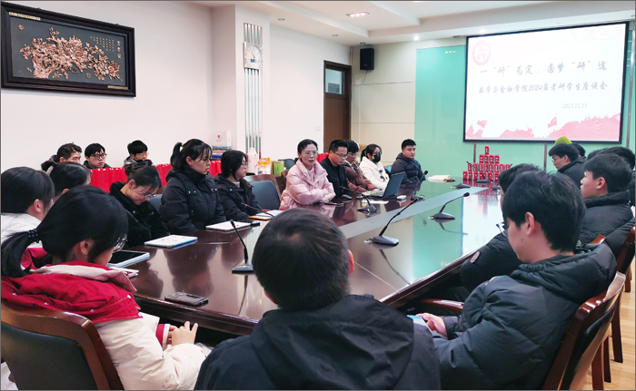 12月15日下午,学院在图书馆二楼会议室召开2024届考研学生座谈会,学院党委书记奚昕、院党委副书记汪志圣、毕业班辅导员周绍鹏、张静雨及考研学生代表一起围坐在会议桌前,亲切交谈,会议由汪志圣主持。会议开始,考研学生代表围绕考研备考经历以及近期复习迎考的感受进行了热烈交流讨论,分享了各自的经验,相互鼓励和加油打气,并为一直以来在备考过程中得么学院学校的关注关心关爱向学院学校表示感谢。汪志圣对考研学生表示了鼓励与慰问,并祝愿考研学生们在最后阶段以最好的状态迎接研究生考试,辅导员们也向学生们送出了美好的祝愿。奚昕书记作了总结发言,让同学们要缓解考试压力,不要过于紧张,要充分利用好最后时间复习,并且要掌握一定的技巧。她嘱咐同学们要将作息时间作适当地调整以适应正式的考试,保持良好的精神与健康状态,在考试期间要选择安静舒适的住处。 会议最后,老师们为考研学生们分发了慰问礼物,并表示了对同学们的期盼与祝愿。