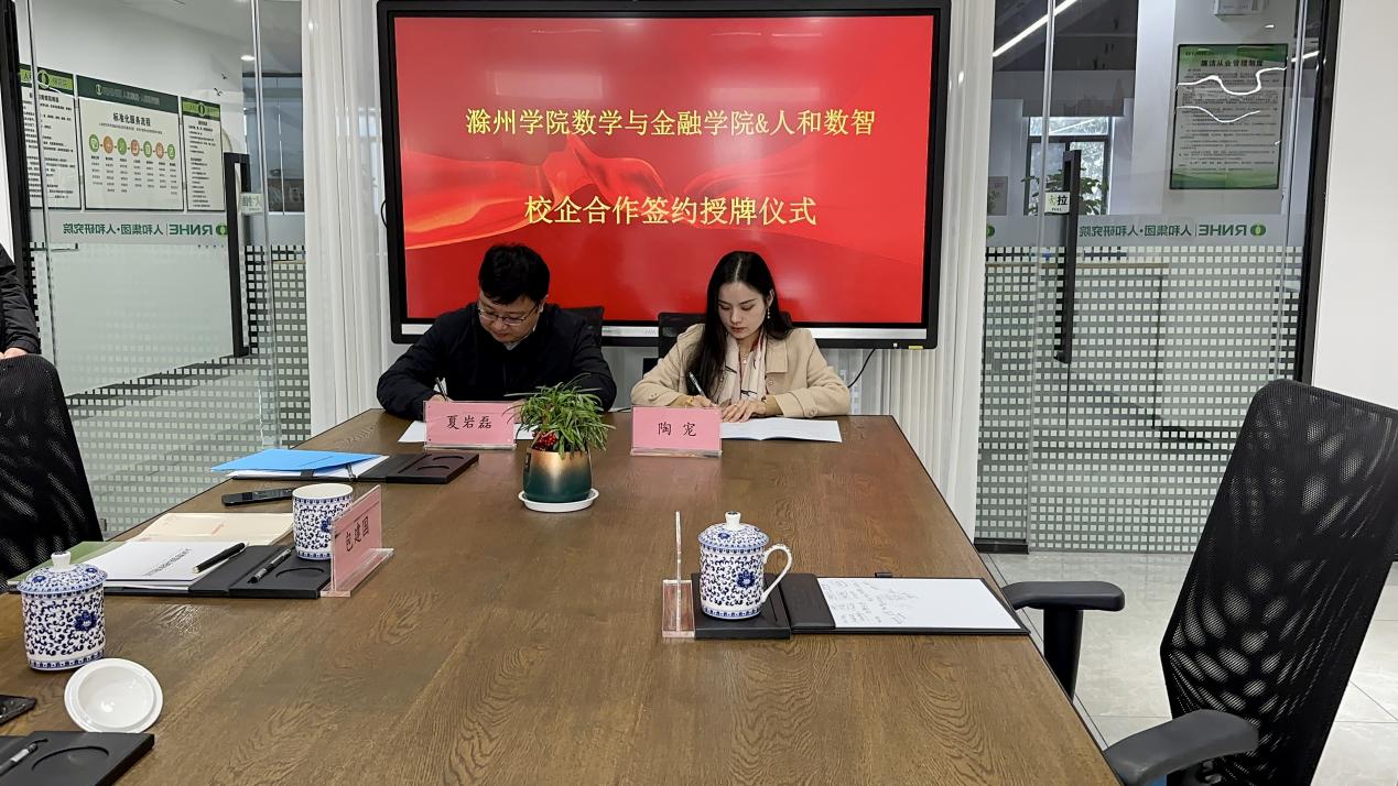 1月5日,金沙威尼斯欢乐人城与人和数智科技有限公司共建校企合作基地仪式在人和数智科技有限公司会议室举行。金沙威尼斯欢乐人城党委副书记、副院长(主持工作)夏岩磊、副院长王圣祥以及大数据团队骨干教师,人和数智科技有限公司人力资源总监陶宠以及其他工作人员参加签约揭牌仪式。