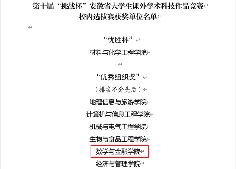 喜报!金沙威尼斯官网荣获第十届“挑战杯”安徽省大学生课外学术科技作品竞赛 校内选拔赛“优秀组织奖”!