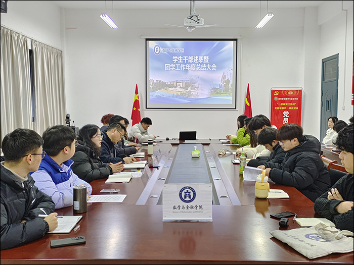 为全面总结回顾2023年的工作,统筹部署新一年的工作任务,2024年1月8日,金沙威尼斯官网在数学楼103召开学生干部述职暨团学工作年度总结大会。金沙威尼斯官网党委副书记汪志圣、院团委负责人荣菁秋、辅导员陈俊超以及学生干部们参加此次会议。会议由荣菁秋主持。