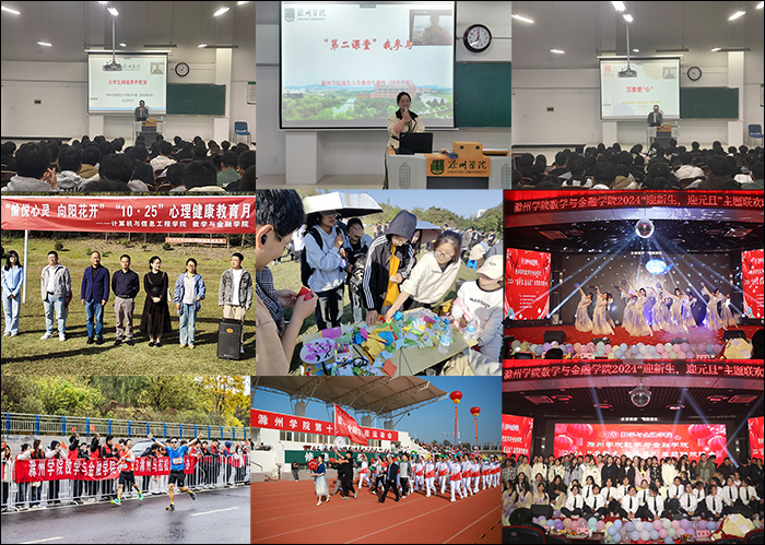 上好“能力素养课”,走好奋发之步,在勤学实练中写下“青春诗行”。学院讲师团讲授网络素养教育课、“第二课堂我参与”专题课、“万象更‘心’”心理健康教育课等;坚持“五育并举”,培养德、智、体、美、劳全面发展的时代新人。开展“愉悦心灵,向阳花开”‘10 25’心理健康教育月系列活动,鼓励新生在丰富多彩的活动中放松身心,提升心理素养;举办2024“迎新生、迎元旦”主题联欢晚会,动员新生在舞台上展示自我风采,学院师生欢聚一堂,共同欣赏视觉盛宴;开展“朋辈关怀,寒冬暖心”心理委员走宿舍活动,督促新生学生干部提升朋辈辅导能力;举办新生寝室设计大赛、新生才艺大赛、“最美课堂笔记大赛”等;动员新生参加秋季运动会,赛出风格、赛出水平,积极报名校运会和滁州马拉松的志愿者、啦啦队和工作人员,培养热心服务的奉献精神;组织学生参加学校素质能力类竞赛,大数据专业裴语婷获得新生主持人大赛三等奖,金融工程专业赵乾呈获得新生团支书微团课比赛三等奖;邀请食品学院双创导师孙啸博士举办双创教育宣讲报告会,激励新生培养创新意识和创新能力。(通讯员:荣菁秋 初审:汪志圣)