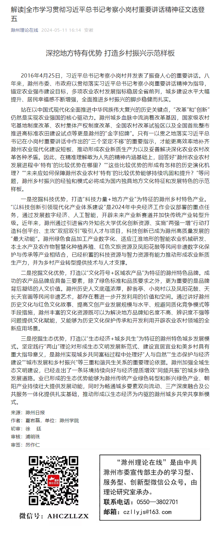原文链接:解读|全市学习贯彻习近平总书记考察小岗村重要讲话精神征文选登五