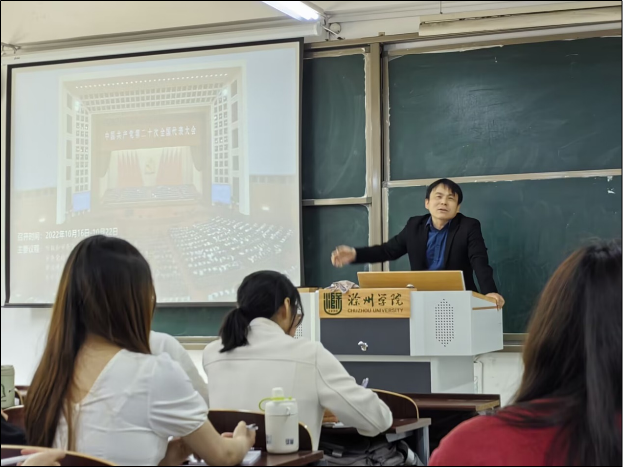 陈光洁老师从“深刻领会党的二十大的重要意义“,”准确把握党的二十大精神实质“,“迅速兴起学习宣传贯彻党的二十大精神的热潮”三个方面解读党的二十大,带领学员回顾党过去五年工作和新时代十年伟大变革;介绍了中国式现代化的中国特色以及党章的起草过程;着重讲解了习近平新时代中国特色社会主义思想的世界观和方法论。