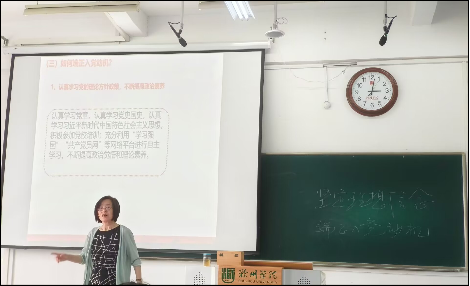 在授课中,陆教授强调了入党动机的重要性,指出只有真正理解党的宗旨,深刻认识到党是中国特色社会主义事业的领导核心,才能在思想上、行动上与党中央保持高度一致。