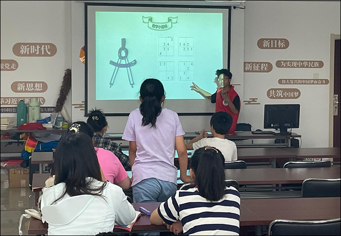 活动中,实践队为社区的中小学生讲解了一些数学基础知识,然后展开了趣味数学小游戏的互动,互动包括二十四点、数独、数学解谜题等。在互动中,孩子们都积极主动的回答相关问题,回答正确的还会获得精美小礼品。随后实践队面向现场中小学生开展了陪伴式暖心助学,有针对性地进行了“一对一”课业辅导。