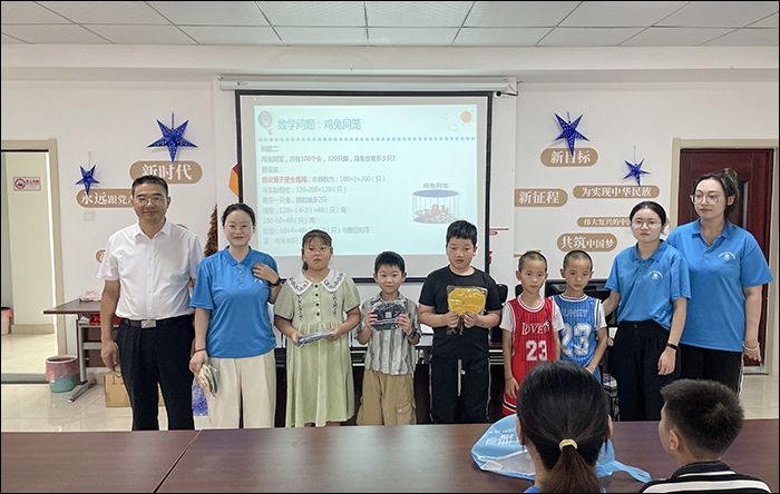 项东看望了“青春智慧科普 乐享数字时代 党建引领下的数学+人工智能启蒙‘趣课堂’”社会实践团队,与在场师生亲切交流实践的感受和收获。他认真旁听了实践队巧设的趣味数学课堂,为表现活跃的孩子们分发小奖品。项东对实践团队发挥专业优势,通过数学知识科普、数学游戏互动等途径培养孩子们数学思维给予了充分的肯定,对实践团队立足前沿热点,通过初级编程体验引导孩子们感受人工智能魅力表示了赞许和支持。项东勉励同学们珍惜实践机会,坚定理想信念,充分发挥先锋作用,在投身实践的过程中认识国情、了解社会,增强社会责任感、创新精神和实践能力,展现当代青年的青春风采。