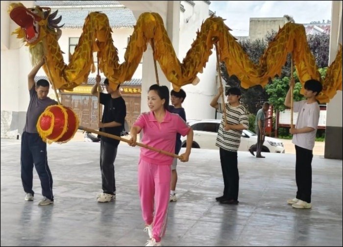 为了进一步探索二龙戏蛛文化,我们又前往了当地的实践基地。在训练基地中,我们在传承人的同意下,通过与当地传承者交流学习,我们对二龙戏蛛的表演有了更深入的了解。我们跟随着老师认真学习和体验了一些二龙戏蛛的基本技巧和方法。通过亲身参与,深刻体会到了这项非遗文化的独特魅力。