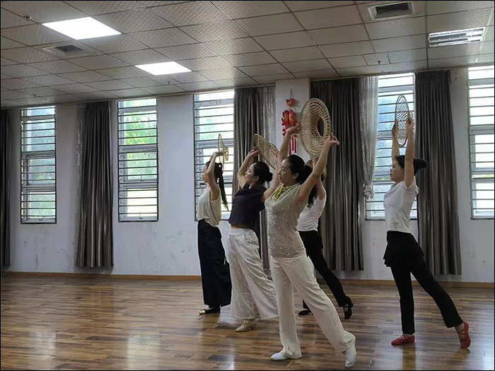 我们首先在明光市文化馆负责人刘捷的带领下,前往参观了由当地中年妇女自发训练的民族舞蹈——绿水青山。据介绍,明光市内最出名的舞蹈流星赶月需在正月十五前后才会有演出,夏季一般不会排练。流星赶月是明光市的非物质文化遗产,起源于当地的民间传说,与七夕节的牛郎织女鹊桥相会有异曲同工之处。随后又观赏到了当地人民对书法,现代的绘画,摄影的创作。这些作品主题广泛,既有山水风光、花鸟鱼虫,也有人物故事、历史传说。它们不仅展示了艺术家们的创作才华,也反映了当地的风土人情和文化传统。小县城的民间文化艺术形式多样,这些艺术形式虽然各有不同,但都深深地扎根于当地的土壤之中,反映了当地人民的生活状态、情感世界和审美观念。