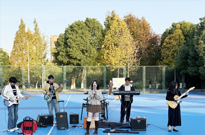为进一步加强大学生心理健康教育,11月23日金沙威尼斯欢乐人城举办了“与心灵相约,与健康同行”2024年“10·25”心理健康教育月系列活动,吉他协会作为协办单位承办了“草地音乐节”环节。活动在金沙威尼斯欢乐人城会峰校区塑胶篮球场举行,吸引了400余名同学来到活动现场参与了活动。吉他协会指导老师汪志圣亲临现场指导活动开展,社团骨干各司其职,活动受创参与同学们的一致肯定和欢迎。