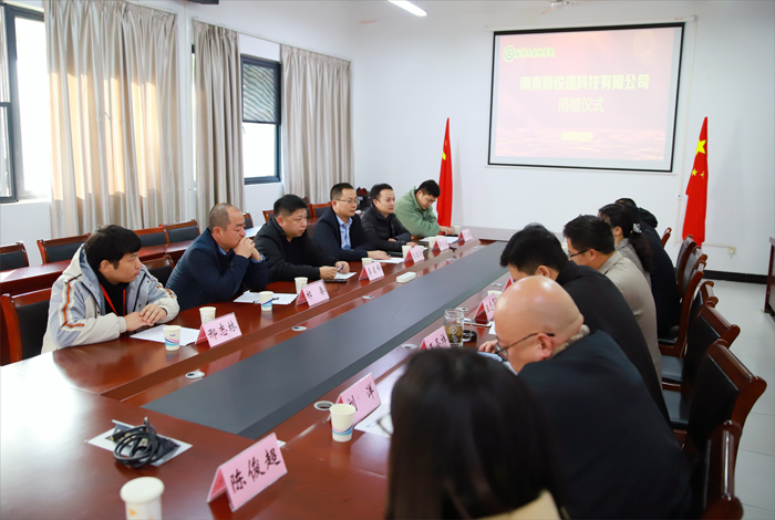 校友企业代表南京斯锐德科技有限公司市场总监朱胜庭代表企业向学校捐赠,学院党委书记奚昕代表学校接受了捐赠,校企双方代表合影留念。