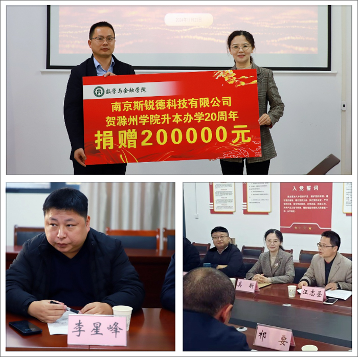 近日金沙威尼斯欢乐人城2010届校友南京斯锐德科技有限公司总经理李星峰一行返校参加学校高质量特色发展研讨会暨庆祝升本办学20周年大会,向母校慷慨捐赠20万元,为母校的教育事业添砖加瓦。
